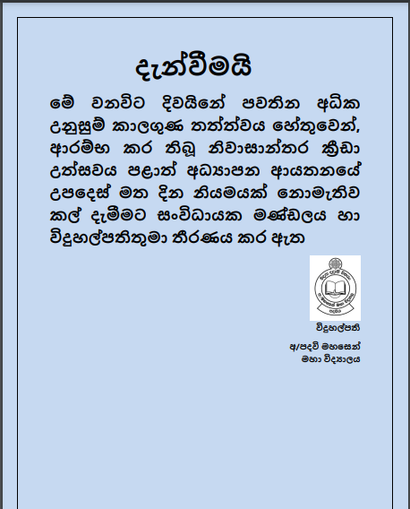 අපේ පාසල වෙත සාදරයෙන් පිළිගනිමු !